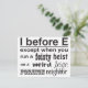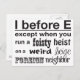 I before e. Except when you run a feisty heist of a weird beige foreigner.