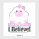 I Believe! Cute cartoon pink and white girl yeti wearing a bow sticker.