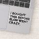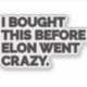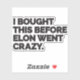 Show Your Opinion in Style! Our high-quality car sticker, “I Bought this Before Elon Went Crazy,” is perfect for anyone who wants to make a statement with a wink and a smile. Modern Design: Clean, easy-to-read text with a humorous touch – guaranteed to turn heads. Join the humorous movement and add a touch of personality to your vehicle or accessories. A great gift for fans of technology, satire, and engaging conversation starters!
