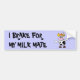 I brake for my milkmate is a funny bumper sticker showing a cartoon bull or cow.