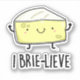 I Brie-lieve Positive Brie Cheese Pun features a cute wedge of brie cheese . Perfect pun gift for family and friends who love cute food cheese puns.