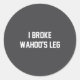I Broke Wahoo's Leg Funny Quote Classic Round Sticker