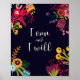 "I can and I will" in white script letters + a frame of bold, vivid flowers. Positive thinking and determination will get you places. Make your own good luck with this statement of bravery and intent.