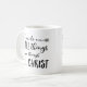 Mug has distressed black typography with well known verse from Philippians 4:13, "... I can do all things through Christ ... "