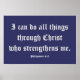 Custom poster featuring Philippians 4:13 Scripture quote 'I can do all things through Christ who strengthens me.' Customisable dark blue-purple (Colour: #333366) background.