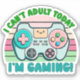 "I Can't Adult Today Cute Joystick" sticker is perfect for everyone who loves gaming. This sticker features a cute joystick in pink, blue, and green colours with the phrase "I can't adult today, I'm gaming". Ideal for anyone who appreciates the joy of gaming, it's a perfect birthday gift. Celebrate your love for gaming on National Video Game Day with this playful sticker..