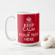 I Can't Keep Calm coffee mug | Customisable text. Personalised Keep Calm and your text travel mugs Make your own funny Keep Calm and Carry On parody. Vintage Keepcalm typography design. Custom background colour ie red. Personalizable template. Other custom colours and vintage keepcalmandcarryon designs are available too. Fun examples: I can't keep calm it's my birthday. I can't keep calm i'm getting married. I can't keep calm i'm a gamer. I can't keep calm i work at ... I cant keep calm because ... Small and big size cup. Extra large giant mug.