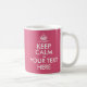 I Can't Keep Calm coffee mug | Customisable text and colour ie pink. Personalised Keep Calm and your text travel mugs Make your own funny Keep Calm and Carry On parody. Vintage Keepcalm typography design. Custom background colour ie red. Personalizable template. Other custom colours and vintage keepcalmandcarryon designs are available too. Fun examples: I can't keep calm it's my birthday. I can't keep calm i'm getting married. I can't keep calm i'm a gamer. I can't keep calm i work at ... I cant keep calm because ... Small and big size cup.  Extra large giant mug.