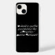 An iPhone case featuring the quote "I can't live without my iPhone" by Sara Paxton in shades of white, and black in a decorative style.