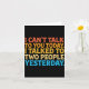 I Can't Talk To You Today Funny Introvert Sarcasti Card