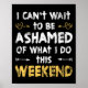 I Cant Wait To Be Ashamed Of What I Do This Weeken Poster
