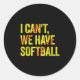 I Can't We Have Softball Classic Round Sticker
