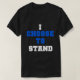 Dark T-shirt with simple white and blue text design reads I Choose To Stand, in reference to standing for the national anthem.