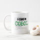 This image prominently displays the phrase "I CODE IN COBOL" at its centre. The words "I CODE IN" are written in black, while "COBOL" is highlighted in a larger, bold green font. The background consists of various lines of code in a light grey colour, which are related to the COBOL programming language. The code snippets include terms like "PERFORM," "QUICK-SORT," "LEFT-INDEX," "RIGHT-INDEX," and "PIVOT-INDEX." This image emphasises the programmer's pride in using COBOL, a legacy programming language still in use today, especially in financial and administrative systems. The combination of the bold statement with the background code highlights the ongoing relevance and importance of COBOL in modern computing.