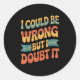 I Could Be Wrong But I Doubt It Sarcastic Men Wome Classic Round Sticker