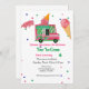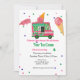 Ice cream birthday invitation is cute and charming. The design has an ice cream truck with a strawberry pink colour scheme. The template is simple to use and can be customised to any age range.