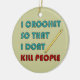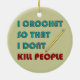 A tongue in cheek slogan 'I crochet so that I don't kill people' with a cartoon crochet hook.
