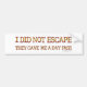 I Did Not Escape They Gave Me a Day Pass - Silly and funny saying on being crazy, insane, and/or mental.