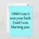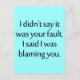 I didn't say it was your fault. I said I was blaming you. Perfect for anyone who doesn't take responsibility for their own actions.