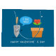 This romantic design features a gardener's spade with a red heart pot plant with the text "I dig you" in modern popular typography and below the text "Happy Valentine's Day".