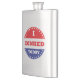 The product is a good size and came exactly as it was pictured. The lid is not attached to the flask, which could be dangerous on drunken nights... The print came out surprisingly well and looks very sharp. Would definitely recommend.