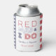 Simple and stylish "Red White and I do" design, incorporating the Stars and Stripes, shown here on can cooles, perfect for a backyard wedding celebration or rehearsal dinner. Would also give a o-ordinated touch to any Red White and Blue Party wedding related party or shower!