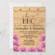 The design has rustic wood background ,string fairy lights, pink flowers, wedding engagement ring and all the texts in the template can be personalised by clicking personalise option
