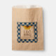 This rustic sunflower gingham favour bag is part of VGInvites blue chequered tablecloth and sunflower collection. It pairs beautifully with our I do bbq invitation suite. These printed paper bags feature a bold yellow sunflower in a painterly style on a vintage background with a chequered pattern design and make great utensil bags or silverware holder. Customise them with the bride and groom's names and wedding date. Perfect for engagement parties, rustic barn weddings, a bbq theme shower or whatever you like. To see more visit www.zazzle.com/vginvites