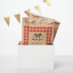 The perfect finishing touch for an I Do BBQ engagement party or rehearsal dinner favour, this favour bag has the couple's monogram among grilling tools and a custom message all with a cheerful red picnic blanket pattern.