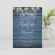 Pretty string lights decorate your special engagement party celebration details set in elegant typography on a blue rustic wood background. Designed by Thisisnotme©