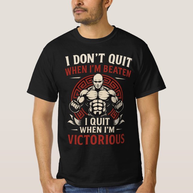 Push your limits with this bold motivational gym t-shirt. Featuring the powerful quote “I don’t quit when I’m beaten, I quit when I’m victorious” and a strong warrior graphic, this shirt is perfect for fitness lovers, athletes, fighters, and anyone chasing success. Ideal for workouts, bodybuilding sessions, training, MMA, or just making a strong statement in everyday life. Designed for men who never give up, this shirt inspires determination, discipline, and victory. A perfect gift for gym rats, sports enthusiasts, and champions who live by strength and perseverance.