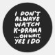 I Don't Always Watch K-drama Funny South Korean Classic Round Sticker