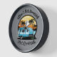 This fun, travel-inspired clock features an RV parked by a tropical beach with the saying "I don't get homesick, I get campsick," perfect for those who love life on the road. Paired with our "Break From The Grind" slogan, it celebrates the freedom of camping and exploring new destinations.