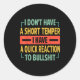 I Don't Have A Short Temper - Quick Reaction To Bu Classic Round Sticker