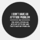 I Don't Have An Attitude Problem Funny Sarcasm Classic Round Sticker