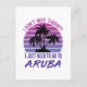 This cool Aruba travel design features a palm tree graphic against a purple retro background. It is perfect for women, men, teens or youth who want a tropical beach vacation in this Caribbean island. Grab one as an Aruba trip souvenir.
