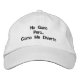 The design was easy to do with a number of options both the hat style, color and so forth. These aren't some printed letters, these are the real deal stitching. The two hats arrived quickly. I've used Zazzle in the past for shirts a number of times and this is the first time for a hat. Zazzle is absolutes the best in every respect; customer service, product selection and results. The embroidery was just right. My artwork was turned into a professional look thanks to Zazzle.