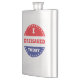 The product is a good size and came exactly as it was pictured.  The lid is not attached to the flask, which could be dangerous on drunken nights... The print came out surprisingly well and looks very sharp.  Would definitely recommend.