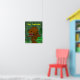 This funny school wall poster design has a cartoon, scary Tyrannosaurus Rex dinosaur surrounded by green jungle plants. Its mouth is open, showing off sharp teeth.