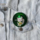 Missy in a green hat with a daisy and "Luck of the Irish" bandanna. She has heard about the "Luck of the Irish", and she would like some. Funny, cute pin for St. Patty's Day. Text can be customised. Image also available on a magnet and postcard.