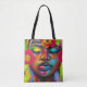 Carry your essentials in style with this eye-catching tote bag featuring an abstract portrayal of an African American woman in a vibrant pop style. The bold colours and intricate floral patterns make this design truly stand out. Perfect for everyday use, this tote bag combines practicality with a unique artistic flair. Whether for personal use or as a thoughtful gift, it’s sure to turn heads and spark conversations.