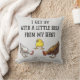 Do you raise chickens and find they bring you peace, comfort, and love? This fun pillow design says: "I get by with a little help from my hens" which is a play on the expression "I get by with a little help from my friends". It may be exactly how you feel about your feathered friends, or how one of your family members or friends feels about their chickens. The design has black lettering across the top with two brown and white watercolor hens pecking at their chicken feed, along with a freshly hatched yellow chick between them. It is sure to be a great gift for anyone who raises and/or loves chickens. You can also change the background colour from pale grey to whatever colour you want by using the blue EDIT button that will take you to the design screen.