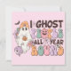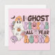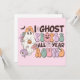 Cute, fun, colourful Halloween design features an adorable ghost, bats, flowers, jack-o-lanterns, a mummy, spider web, and text of melon, aqua, lavender, and pink that reads I Ghost People All Year Round! This cute and funny design is great for the Halloween holiday but can be worn any time!