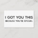 Sometimes you want to dispense with the formalities and cut to the chase. Sometimes you and your tribe prefer a but of humour to your special occasions. This gift tag enclosure card is for you. On two lines, the message reads "I got you this because you're special". The back is blank so you can hand-write a personal message. Fully-editable, you can change the font or its colour, or the background colour. In fact, if you feel so inclined, you can even change the message. It's your card. Make it your own! // Designed by Melody Watson for Paper Muserie.
