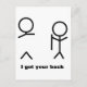 I Got Your Back" is a funny phrase.This I Got Your Back product takes the phrase of "I got your back" --- literally. A stickman takes the back of the other one -literally. Customise and personalise the background colour if desired and have loads of fun with friends and family.