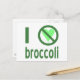I hate broccoli. Design uses green letters, a green heart and the international "NO" sign to read , "I hate broccoli". For those that do not "heart" it, really dislike it, but have a sense of humour (humour), love to laugh and have their funny bone tickled.