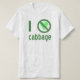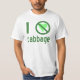 I hate cabbage. Design uses green letters, a green heart and the international "NO" sign to read , "I hate cabbage". For those that do not "heart" it, really dislike it, but have a sense of humour (humour), love to laugh and have their funny bone tickled.