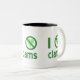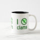 I hate clams. Design uses green letters, a green heart and the international "NO" sign to read , "I hate clams". For those that do not "heart" them or seafood.