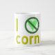 I hate corn. Design uses yellow letters, a green heart and the international "NO" sign to read , "I hate corn". For those that do not "heart" it.