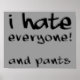 I Hate Everyone And Pants Funny Poster Sign